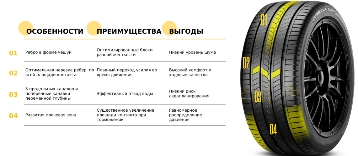 Formula Rosso — это универсальные летние шины для уверенного передвижения по городу и путешествий. Оптимальный вариант проверенных технологий, надежного сцепления на сухих и мокрых покрытиях, точной управляемости и комфорта на каждый день.