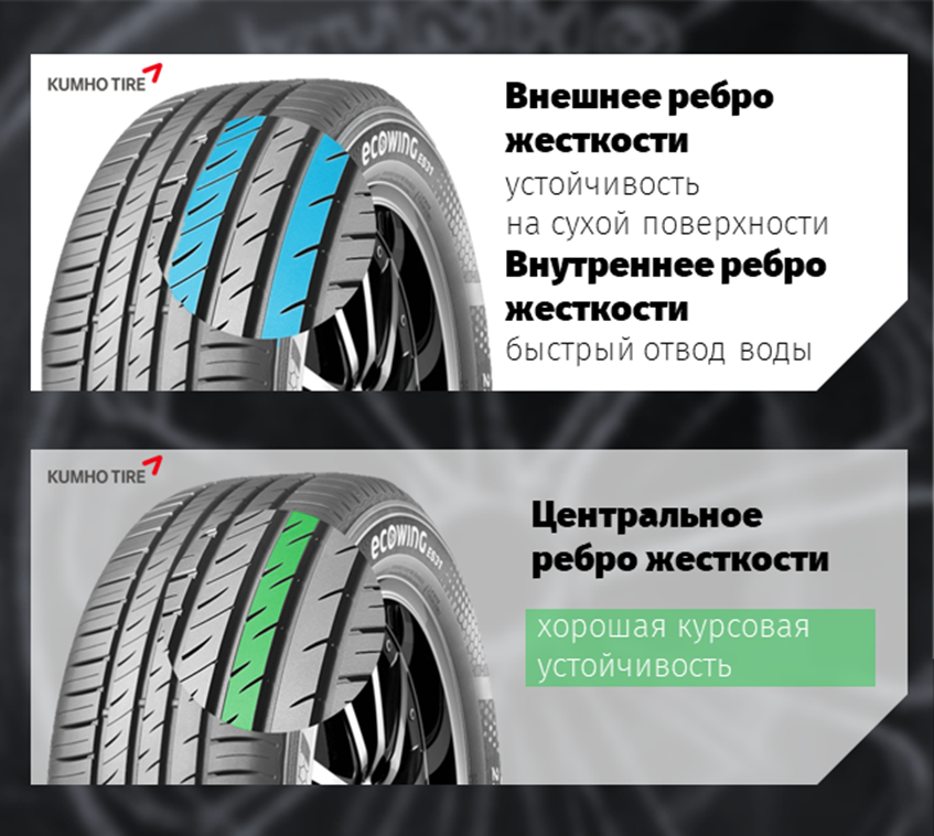 Kumho Ecowing ES31 — летняя шина для легковых автомобилей, ориентированная на экологичность, экономию топлива и комфортное вождение.