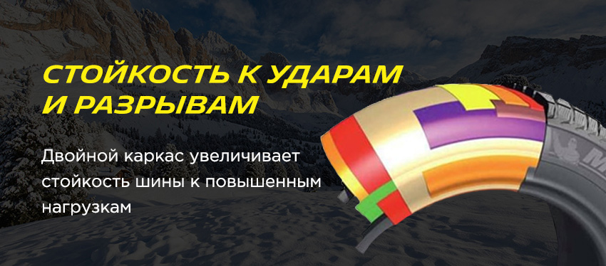 Боковины шины усилены специальными вставками, которые защищают шины от дорожных неприятностей и ударов во время наездов на бордюры.