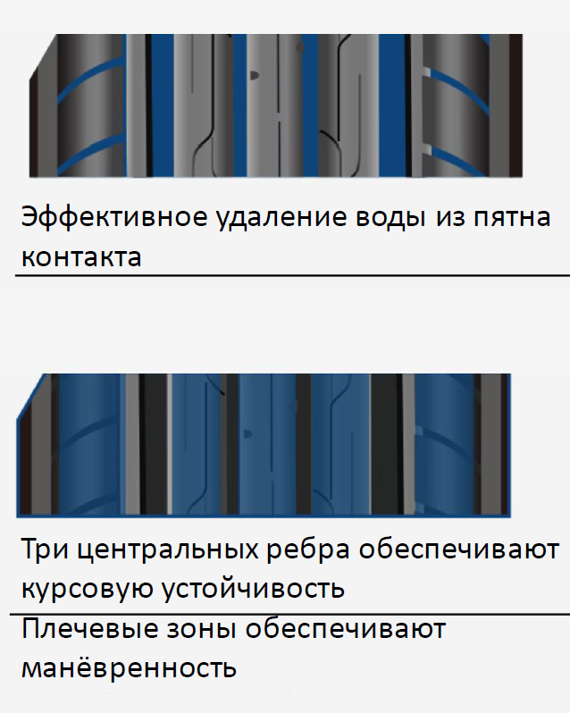 - эффективный отвод воды для улучшенного сцепления на мокрой дороге;